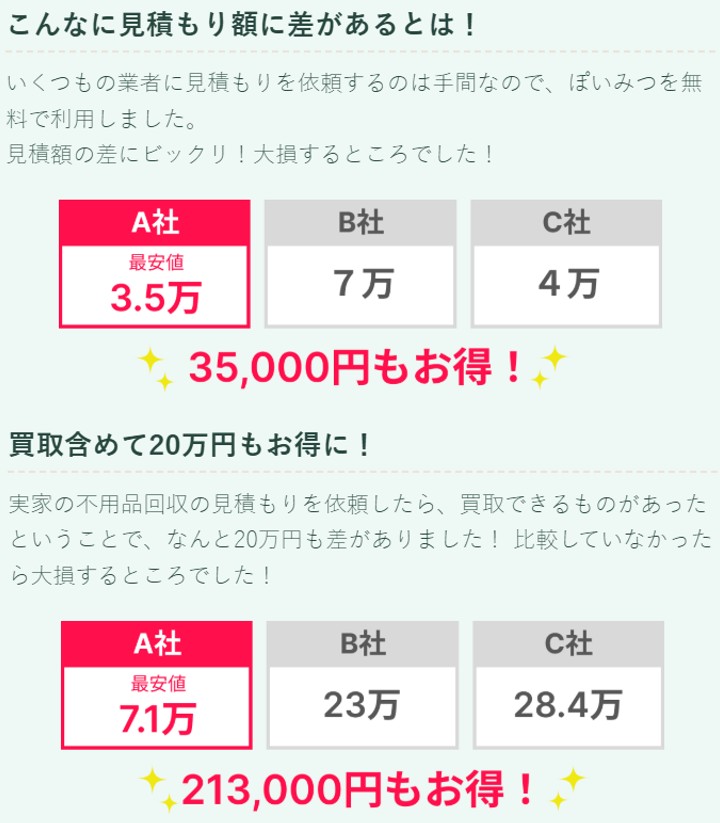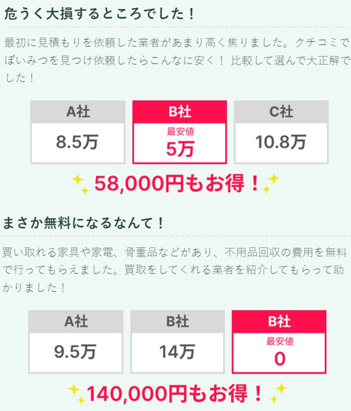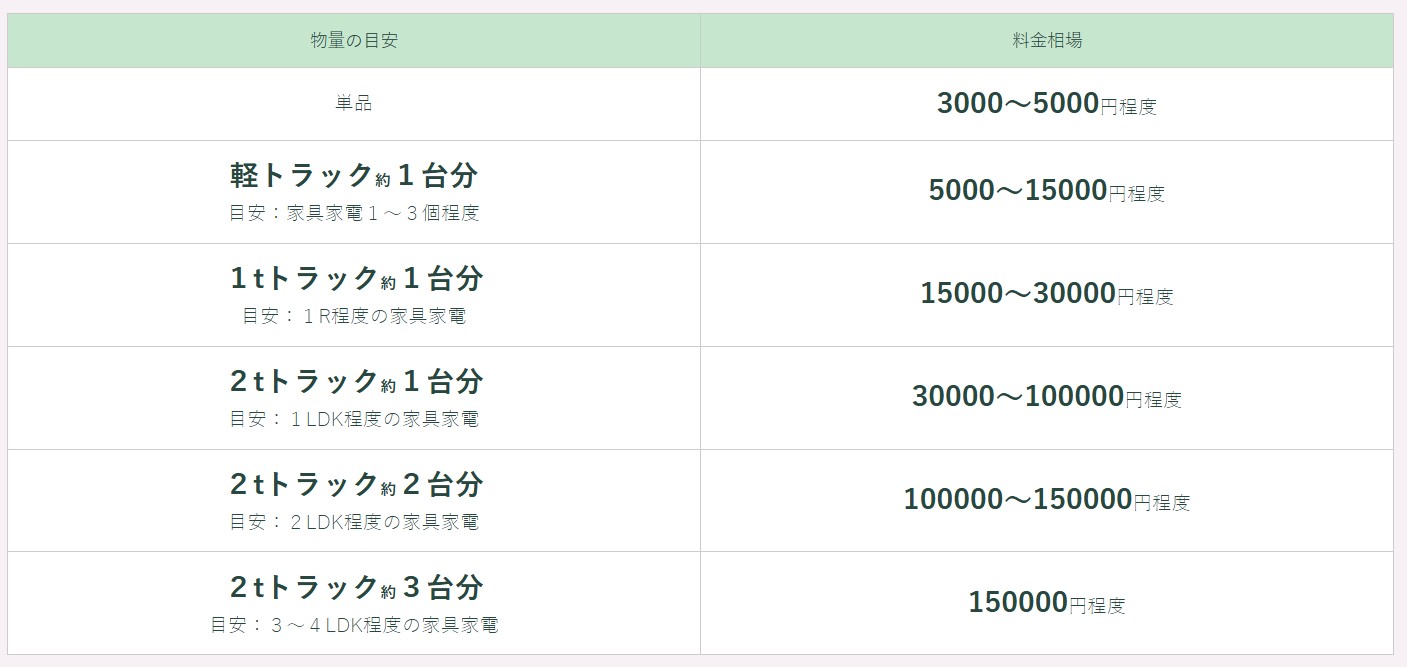 不用品回収業者の費用感が分かるので、