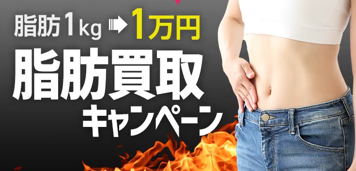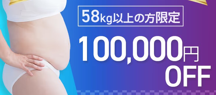 | キャンペーン ◎ 15か月分 0円 58kg以上の方 10万円OFF 脂肪1kgで 1万円買取 |