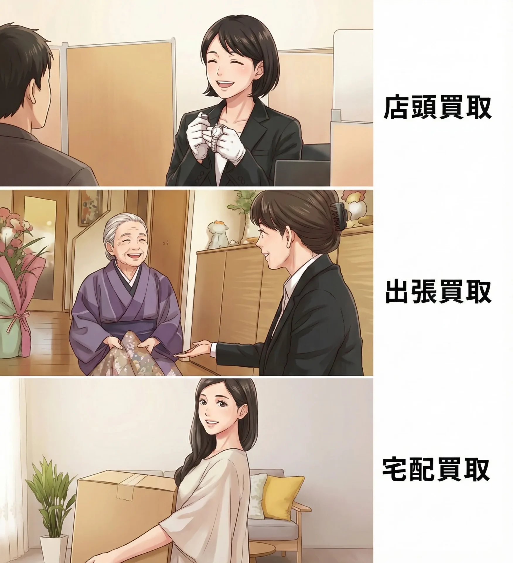 買取方法 出張買取 宅配買取 店頭買取 |